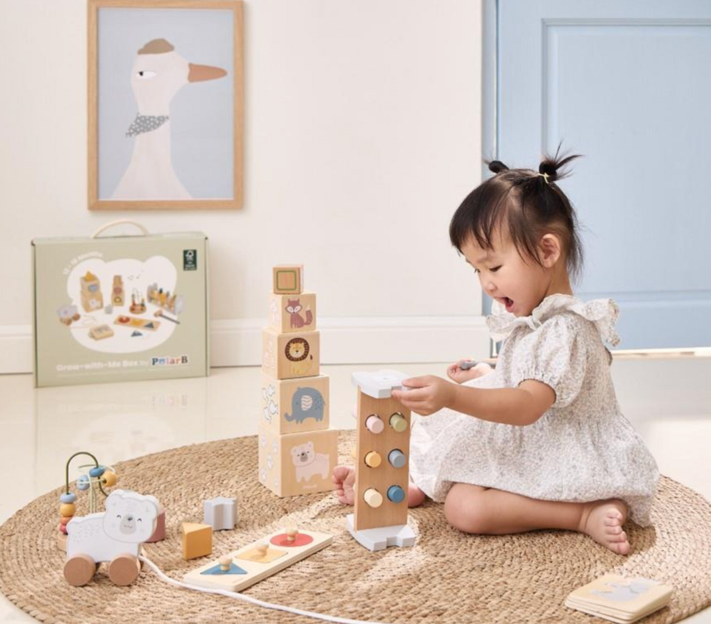PolarB's Grow-with-Me Boxes support children's learning during important development stages with play essentials tailored to their age. It also saves parents time and energy selecting age-appropriate, safe and educational toys. All toys are crafted from FSC-certified wood to ensure environmental sustainability and durability.
